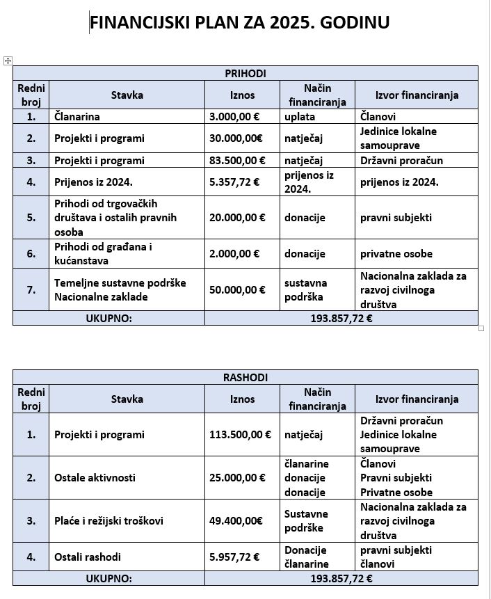 OPERATIVNI I FINANCIJSKI PLAN RADA ZA 2025. GODINU