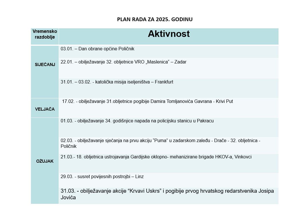 Upravni odbor Udruge veterana 7. gardijske brigade „PUMA“ održanog dana 16. prosinca 2024. godine jednoglasno je prihvatio prijedlog operativnog plana rada za 2025. godinu i financijskog plana rada za 2025. godinu.