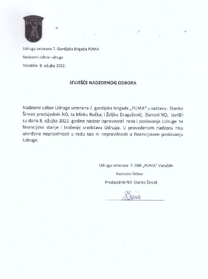 Sve navedeno pokazuje i dokazuje da je Udruga veterana 7. gardijska brigada „PUMA“ svojim radom i provedbom svojih programa i projekata aktivni čimbenik razvoja civilnog društva i ostvaruje dodanu društvenu vrijednost za korisnike u svim područjima djelovanja
